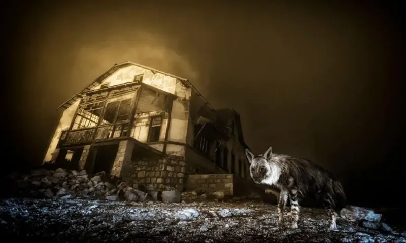 نمیبیا میں ایک قصبے میں کھڑے نایاب بھورے رنگ کے لگڑ بگڑ (Hyena) کی تصویر نے فوٹوگرافر کو وائلڈ لائف فوٹوگرافر آف دی ایئر 2025 کا اعزاز جتوادیا۔