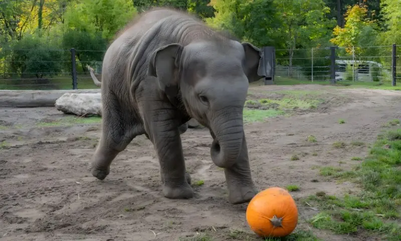 اس بار سب کی توجہ کا مرکز ایک ننھی سی ہتھنی تُلاتُو تھی۔ اب ظاہر ہے، تُلا تُو ابھی اتنی بڑی نہیں ہوئی کہ ان دیوہیکل کدّوؤں کو توڑ سکے۔ اس کا وزن خود تقریباً 775 پاؤنڈ ہے، یعنی لگ بھگ ایک بڑے کدو جتنا۔ اس لیے منتظمین نے اُسے کھیلنے کے لیے ایک چھوٹا سا کدو دیا۔ ویڈیو میں دیکھا جا سکتا ہے کہ تُلا تُو نے اسے بال کی طرح ادھر اُدھر لڑھکایا، ٹھوکر ماری، اور ایسے کھیلتی رہی جیسے کوئی شرارتی بچہ اپنے نئے کھلونا گیند سے کھیل رہا ہو۔