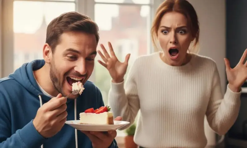 اگلی صبح جب خاتون نے اپنا بچا ہوا کیک کھانے کی کوشش کی، تو وہ ختم ہو چکا تھا۔ شروع میں شوہر نے انکار کیا، لیکن بعد میں تسلیم کرلیا کہ وہ رات کو بھوک کی وجہ سے اپنا حصہ ختم کر چکے تھے اور صرف آخری ٹکڑا بچا تھا۔