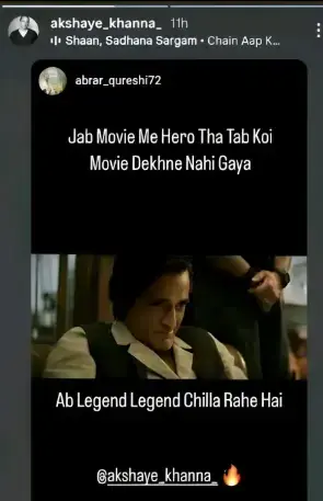اکشے کھنہ نے اپنی آنے والی فلم دھُرندھر کے حوالے سے ایک فین کی تند و تیز پوسٹ کو اپنی انسٹاگرام اسٹوری پر شیئر کر کے آن لائن بحث چھیڑ دی ہے۔